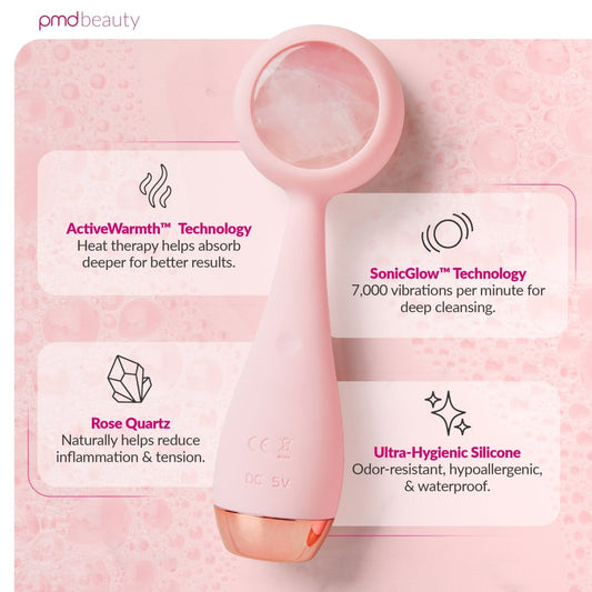 "The original PMD Clean has changed my skin care game and this NEW device is bigger and better! Not only is it stunning it is effective. The new charger and travel case also amazing. If you have any doubts, please do yourself a favor and try it. Plus, the rose quartz is just brilliant. Thank you, PMD!"