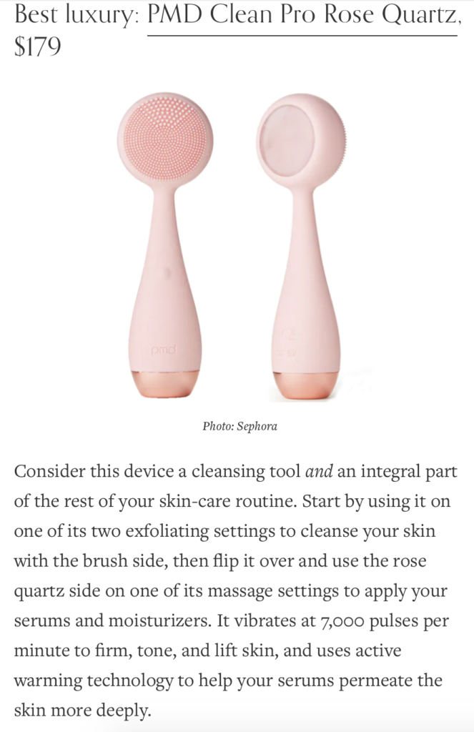 Well and Good did a round up of the best facial cleansing brushes to buy instead. The PMD Clean Pro RQ came in as #1 labeled “Best Luxury”.
