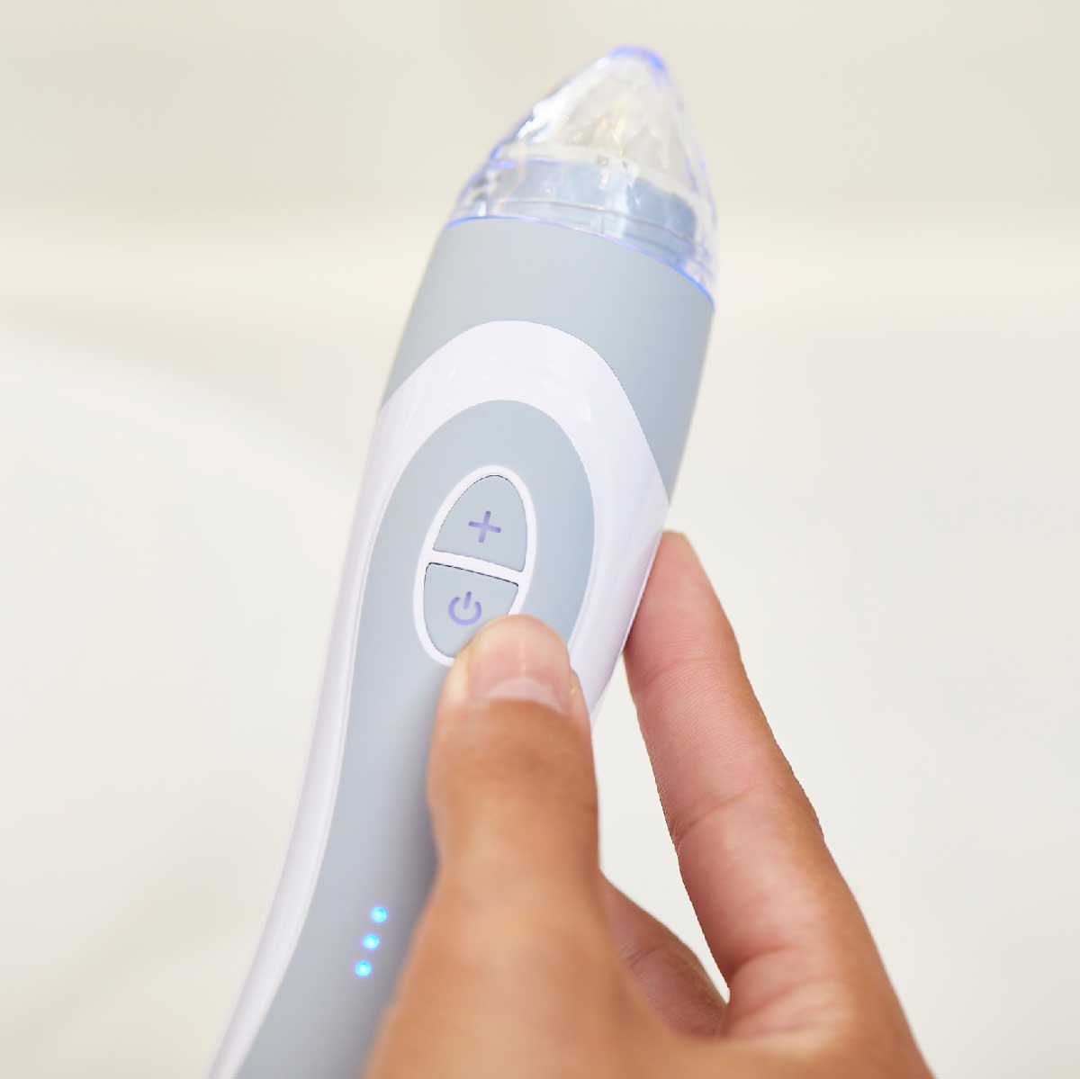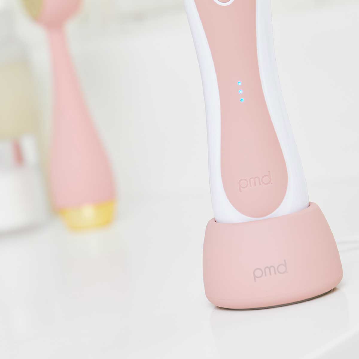 Place the Personal Microderm Elite Pro on the charging base. The device is fully charged when all three lights are illuminated