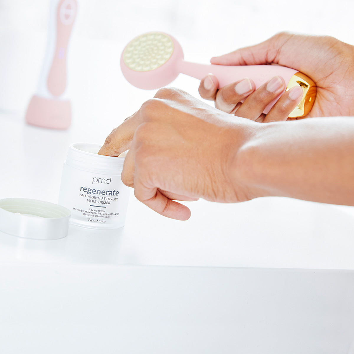 Use only as directed. Not following instructions (including multiple passes, too high setting, pressure, pausing in one spot, or other unintended uses) may lead to rash, redness, itching or even injury. If this occurs, discontinue use and consult a medical professional. Product is intended for external use only. Avoid sensitive areas including any area with broken, irritated, or itching skin. The product and its charger are not waterproof. Do not use near water, while skin is wet, or while skin is moist from product. Keep product out of reach of children and do not use on children below age 16.  PMD is not responsible for malfunction or injury if the product is not used as intended.Not intended for clinical or commercial use. The effects of the Personal Microderm Elite Pro are not always immediately visible and results may vary. Do not use any active or peeling skincare products for 48 hours before or after using the Personal Microderm —your skin may have increased sensitivity.If you have any questions regarding application, please reach out to our experts at 888-445-4532.
