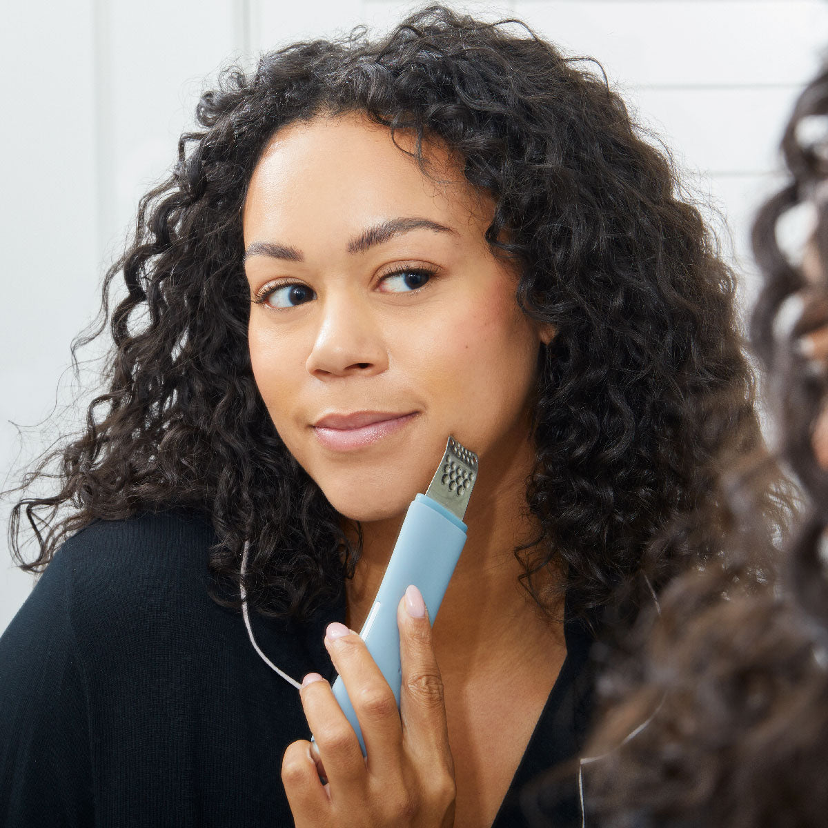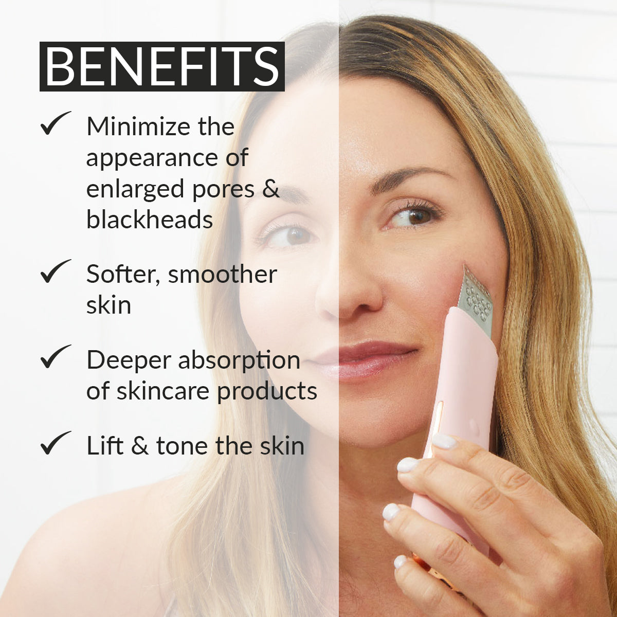 Extract mode uses negative ions that help lift debris, dead skin, and sebum out of the pores.